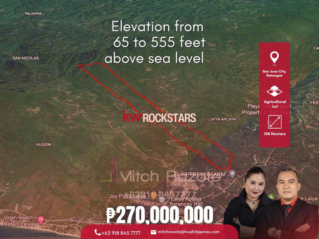 Prime 108 Hectare Agricultural Lot For Sale in Laiya, Batangas Ideal For Housing Subdivisions, Retirement Resorts, Golf Courses, or Ecotourism