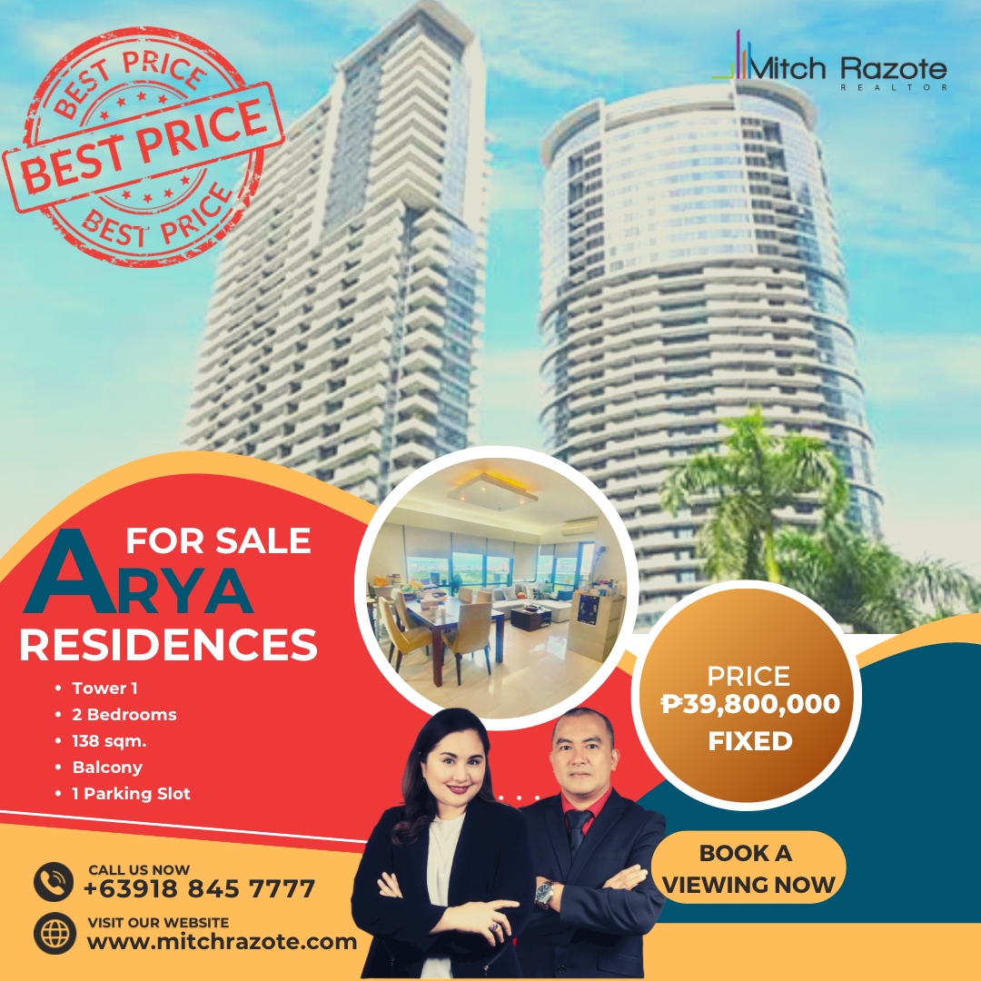 Arya Residences is the fusion of architectural refinement and environmentally sensitive design. Strategically located at McKinley Parkway, Bonifacio Global City (BGC), Taguig, this two-tower luxury green condominium was finished on schedule and has become one of the most desirable residential addresses in BGC.